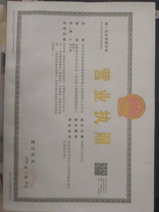 企业营业执照已通过 平台认证