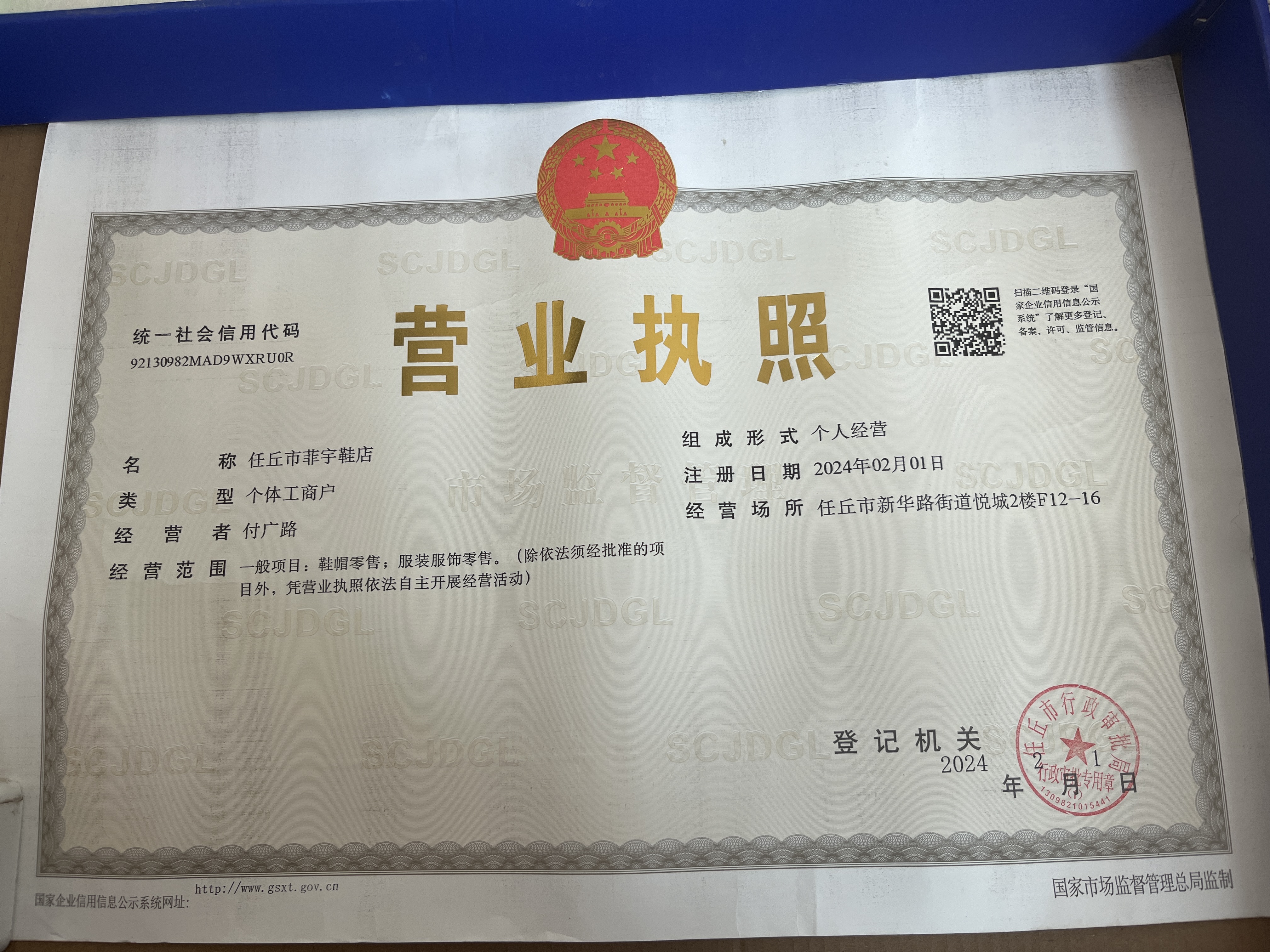 企业营业执照已通过 平台认证