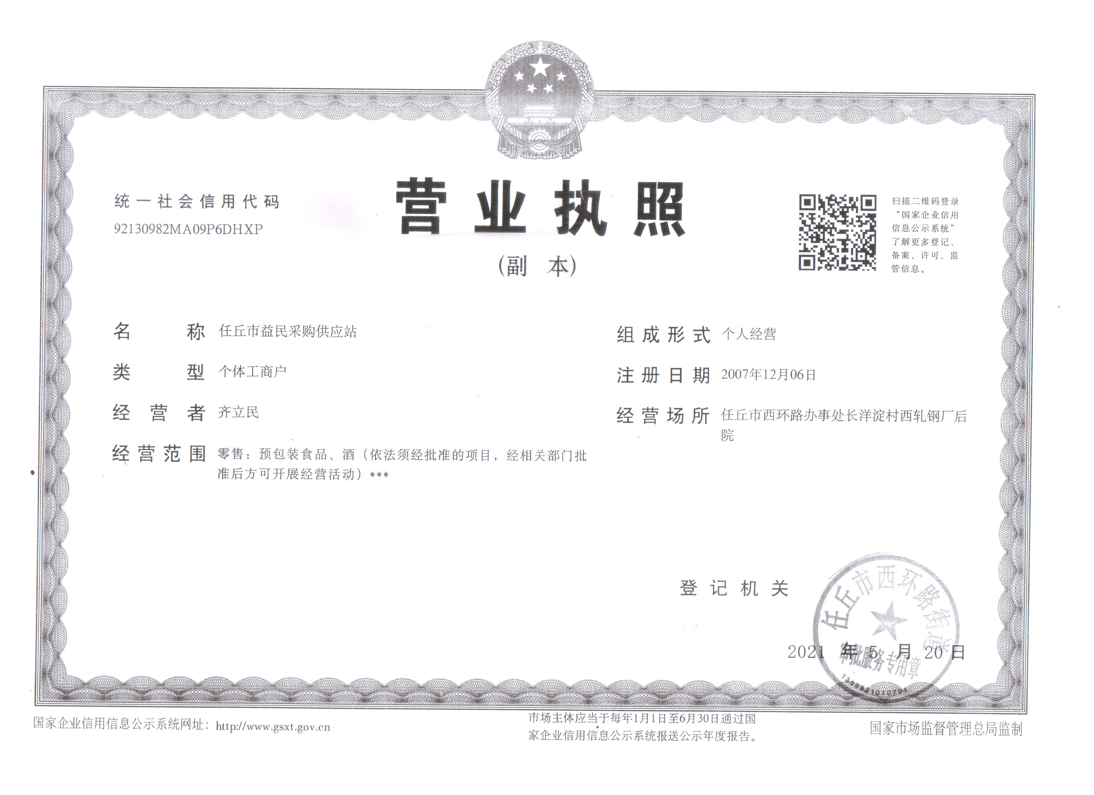 企业营业执照已通过 平台认证